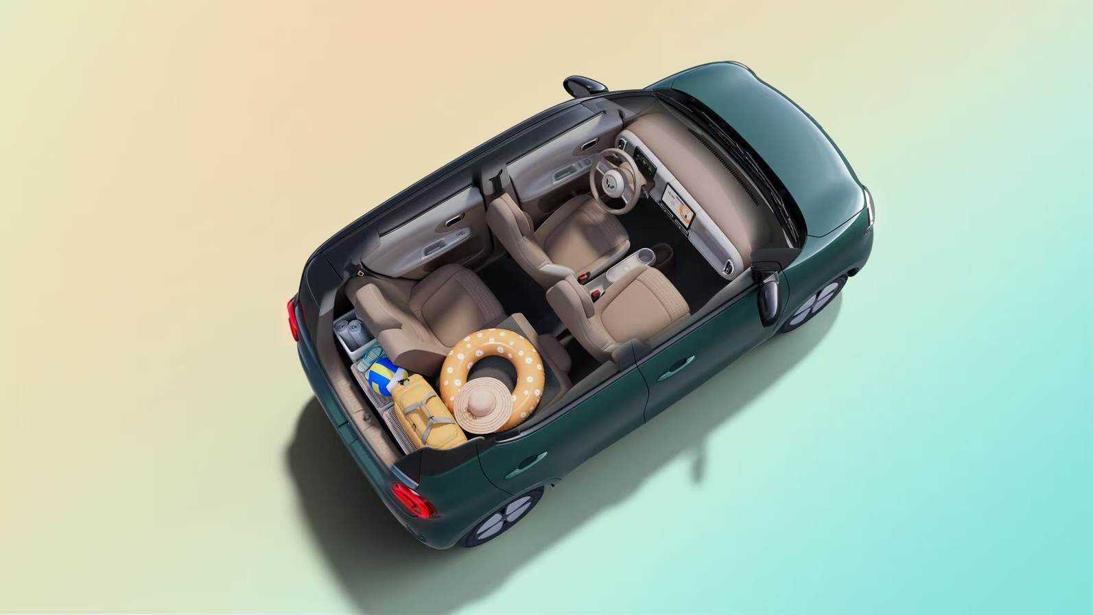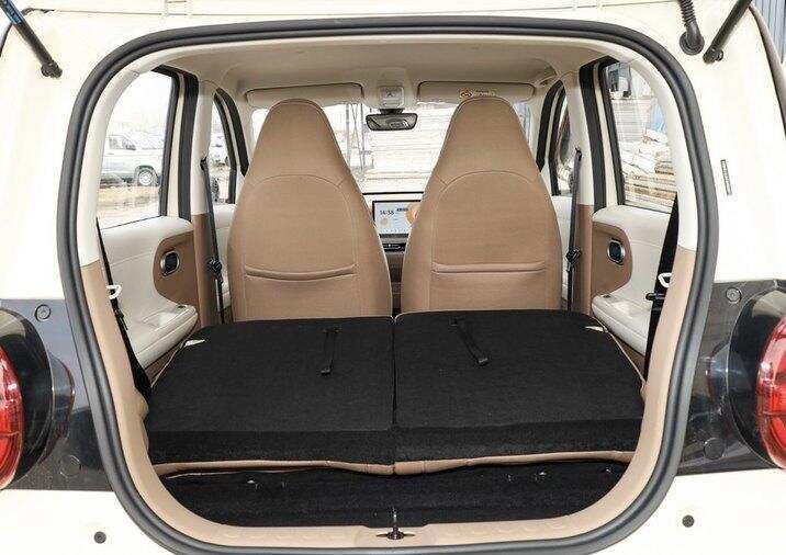 更值得关注的是车内空间的革命性优化。通过优化电池布局和座椅结构,其前后排间距达793mm,后排头部空间620mm,腿部空间454mm,提升了后排进出的便利性,配合可独立放倒的后排座椅,轻松容纳婴儿车或大型购物袋,并可适配多人同行的出行场景,彻底打破"微型车=局促"的固有认知。