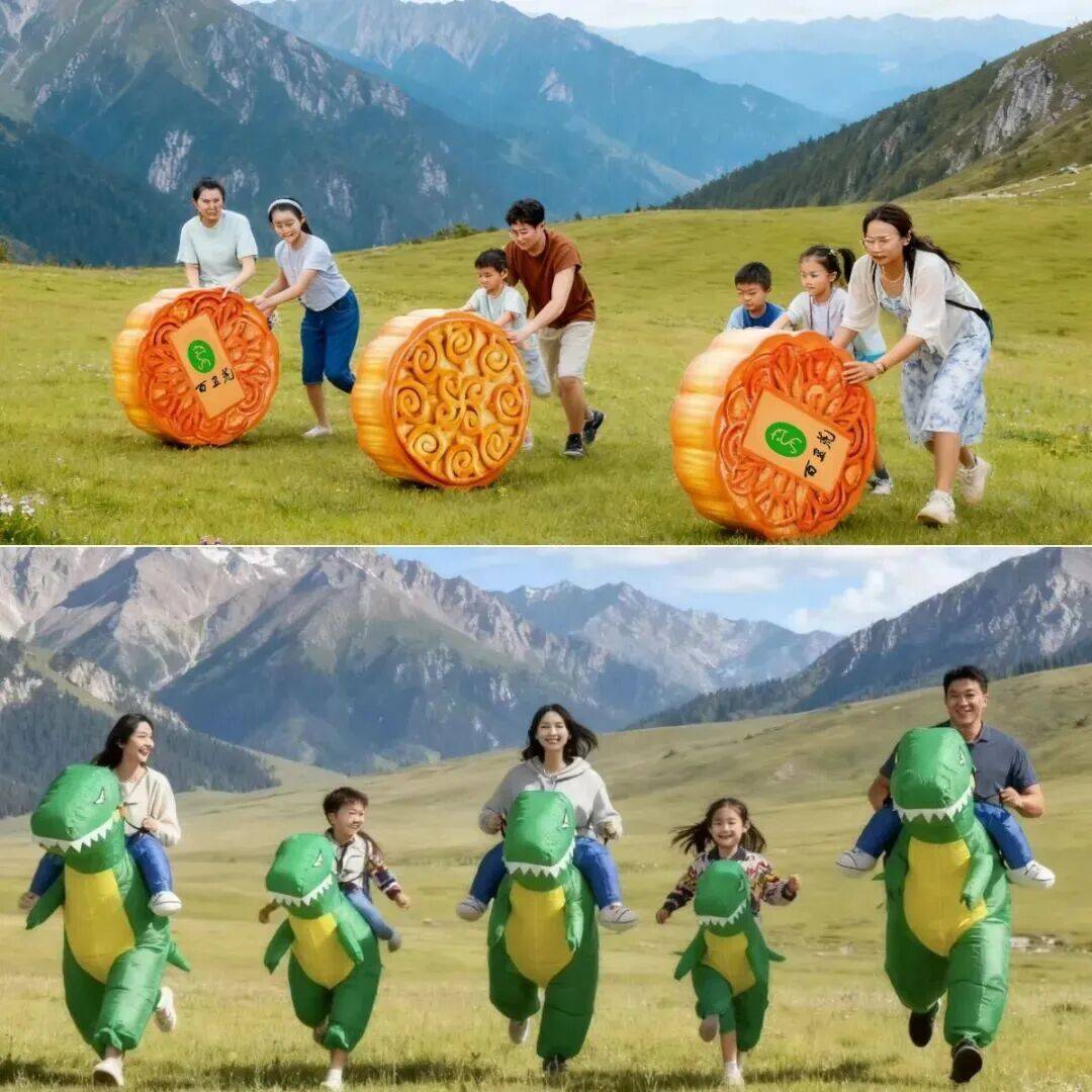 国庆期间,在百里荒解锁 “亲子游”的快乐,“滚月饼接力赛”“恐龙装折返跑”“背娃俯卧撑”,比赛面向5-12岁儿童家庭,挑战成功更有机会赢得酒店住宿等终极大奖。